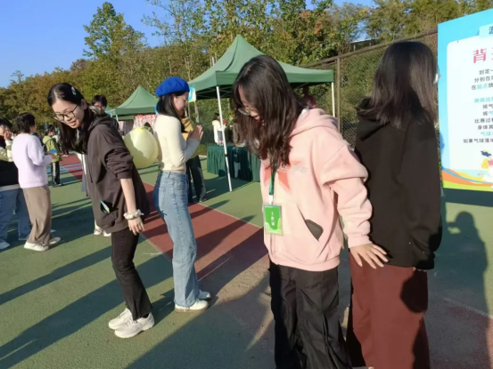 “二人齐心,其力断金”。背夹气球的摊前,在志愿者的指导下,来自各个学院的同学和朋友“背对背拥抱”,紧张地夹住气球,或是小碎步前进,或是大踏步向前。背夹气球以游戏为引,让同学们暂时将注意力从学习和工作中转移出来,在轻松的氛围中舒缓心情、释放压力。
