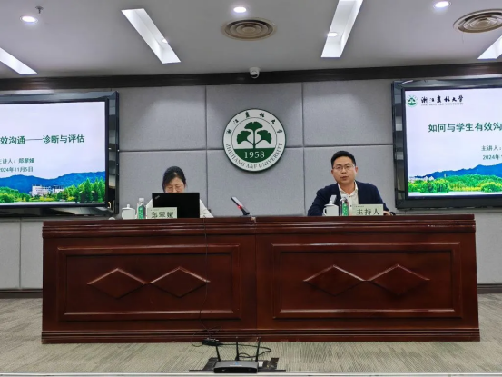 11月5日下午,主题为《诊断与评估,如何与学生有效沟通》的心理讲座在图书馆第二报告厅举行,本次讲座由临安区第五人民医院精神科医生郑翠娅主讲,学工部部长周晓光担任主持。学校全体学生副书记、辅导员、公寓辅导员等共计百余人参加本次讲座。