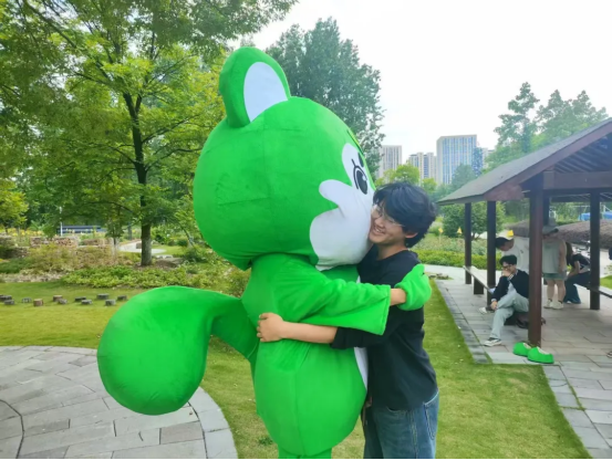 感谢勇敢张开双臂、传递温暖的志愿者们,你们是“果果”的化身,你们是温暖的使者!更要感谢每一位主动走近、给予拥抱、留下祝福的同学!你们的热情参与,让“拥抱一分钟,温暖一整天”不再只是一句口号,而是真实发生在A操玫瑰花廊的动人故事。是你们,让校园在这个午后充满了爱与温度,让彼此的心灵找到了短暂的栖息与慰藉。