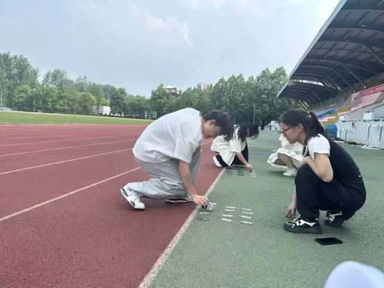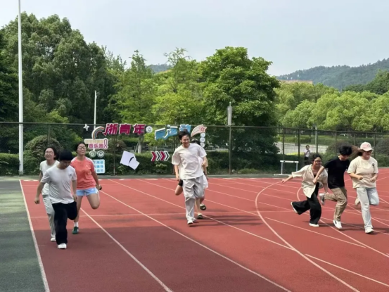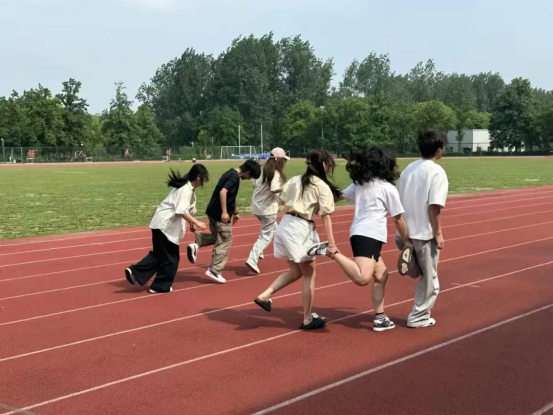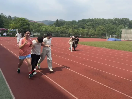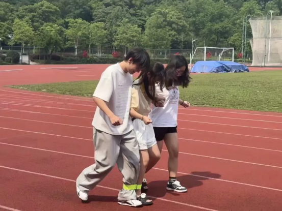 活动伊始,同学们通过群内抽取的方式,3人一组组队完毕。随后,一系列精彩游戏有序开展。在“达芬奇密码”游戏中,各队同学需按序翻出牌面数字。同学们全神贯注,在八米外与队友默契配合,争分夺秒地完成任务,现场紧张又刺激。“三人四脚跑”环节,每组三名同学用绑带绑住相应的腿,齐心协力奔跑50m,大家相互扶持,喊着口号奋勇向前,充分展现了团队合作精神。